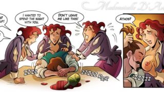 1 Ah, drunk friends are the worst—especially when you’re hoping for more than just sleep! :/ [Mademoiselle DArtagnan] (ReinaCanallaArt)